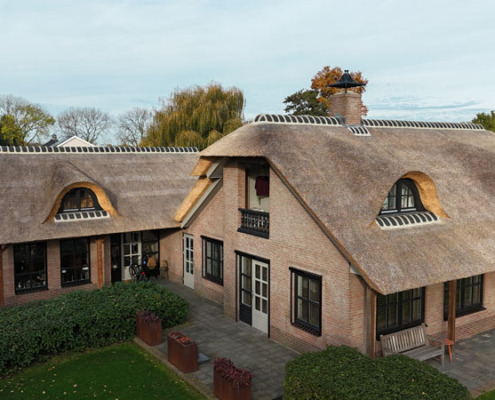 Uiteraard zijn we u graag van dienst met rieten daken op een aantal verschillende soorten woningen. Heeft u een vrijstaande woning met een relatief compact formaat, of gaat het om een twee-onder-1-kap woning waarbij u samen met uw buren voor een rieten dak wilt kiezen? Wij bieden de mogelijkheden. Blader door de verschillende foto’s van rietgedekte woningen, om zelf een indruk op te doen van wat er mogelijk is.